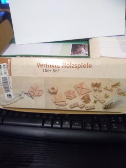 10 verschiedene Knobelspiele aus Holz in separaten Säckchen