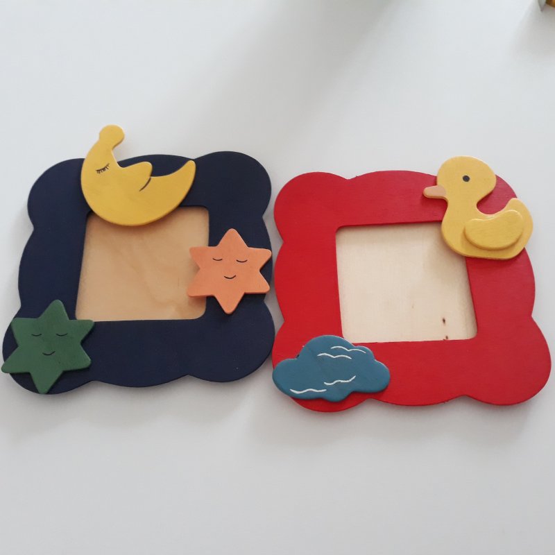 2 kleine Bilderrahmen mit Öse zum aufhängen, aus Holz