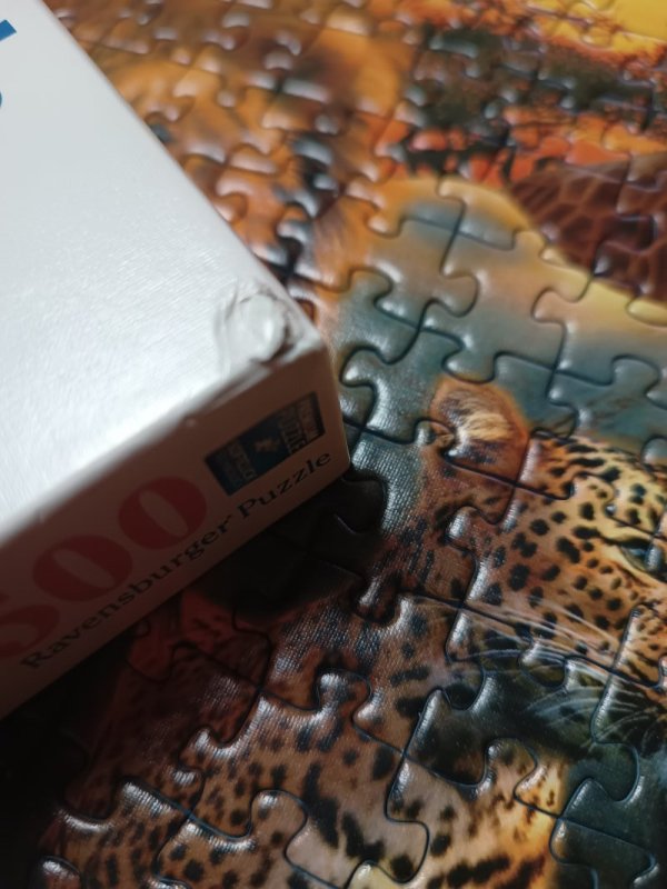 Vollständig, Teile mit wenigen Gebrauchsspuren, nur ein Teil hat 2 "Punkte" mit Farbabrieb, Karton hat an den Ecken etwas Farbabrieb und an einer Ecke eine Druckstelle