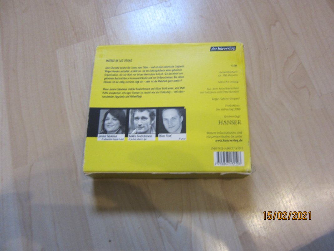 DAs Hörbuch wurde einmal abgespielt hat kaum Gebrauchsspuren. Der Pappschuber ist an den Ecken angestoßen, nicht mehr so dolle.
