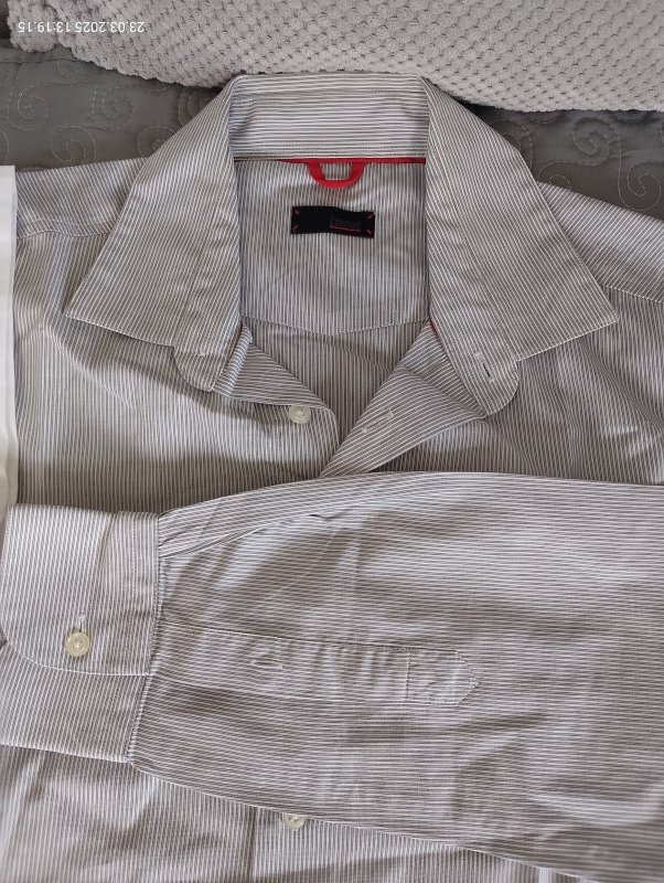 1x Hemd, grau weiß gestreift, Langarm, Gr. 39, einf. BW 55 cm, Länge 75 cm (100% Baumwolle)