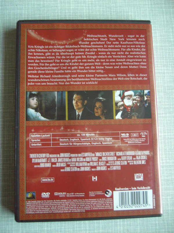 Weltstar Richard Attenborough und seine kleine Partnerin Mara Wilson, leben in dieser wunderschönen Neufassung des berühmtesten Weihnachtsfilms der Welt eine Botschaft, die jeder von uns braucht: Nur das Wunder ist wirklich!