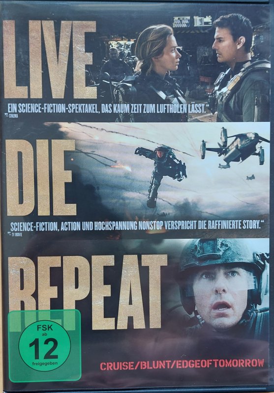 Major Bill Cage (Cruise) verfügt über keinerlei Kampferfahrung, als er ohne Vorwarnung zu einem Einsatz abkommandiert wird, den man nur als Selbstmordkommando bezeichnen kann. Cage wird innerhalb weniger Minuten getötet, landet aber unbegreiflicherweise in einer Zeitschleife, die ihn dazu verdammt, dasselbe grausige Gefecht ständig aufs Neue zu durchleben: Wieder und immer wieder muss er kämpfen und sterben ...