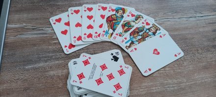 Einfaches Kartenspiel mit 32 Blatt, Rückseite mit Werbung