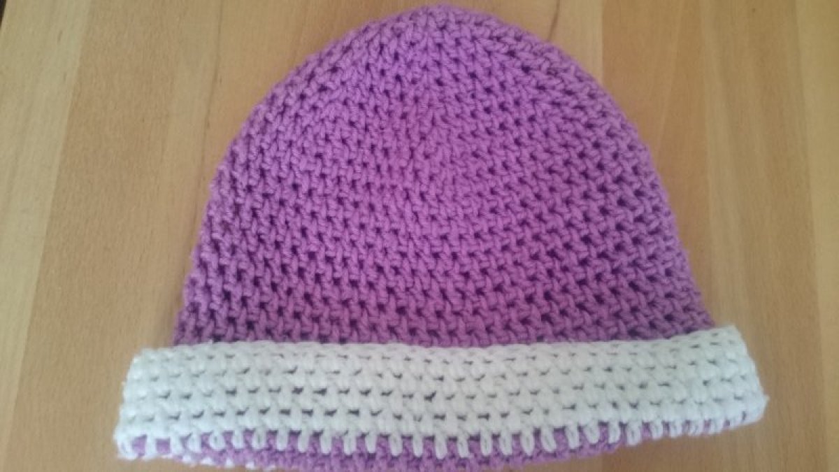 Gehäkelte Mütze lilaweiß ca 1,5-3 Jahre