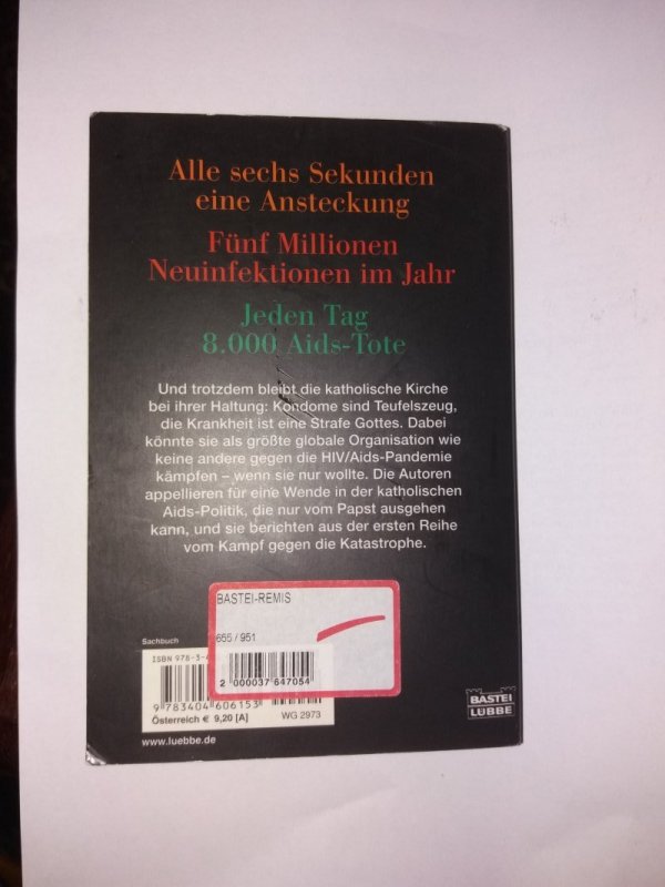 Und trotzdem bleibt die katholische Kirche bei ihrer Haltung: Kondome sind Teufelszeug, die Krankheit ist eine Strafe Gottes. Dabei könnte sie als größte globale Organisation wie keine andere gegen die HIV/Aids-Pandemie kämpfen ═ wenn sie nur wollte. Die Autoren appellieren für eine Wende in der katholischen Aids-Politik, die nur vom Papst ausgehen kann, und sie berichten aus der ersten Reihe vom Kampf gegen die Katastrophe.