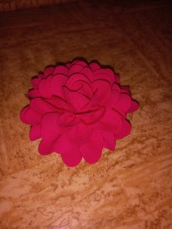 An der Kunstrose ist ein Haargummi und eine Klemme befestigt