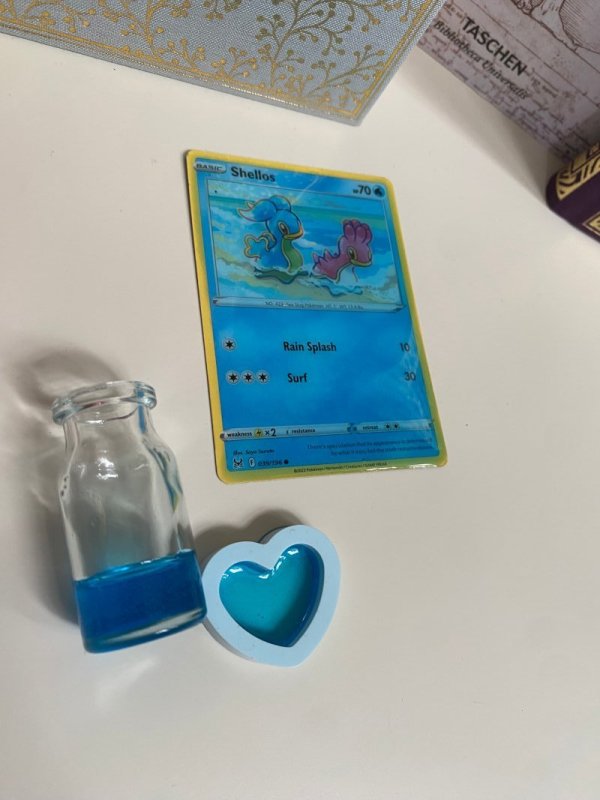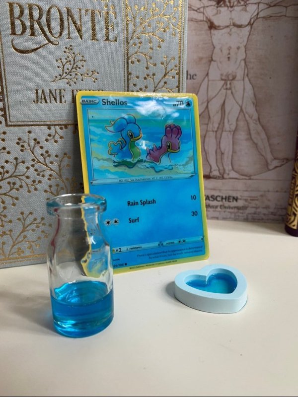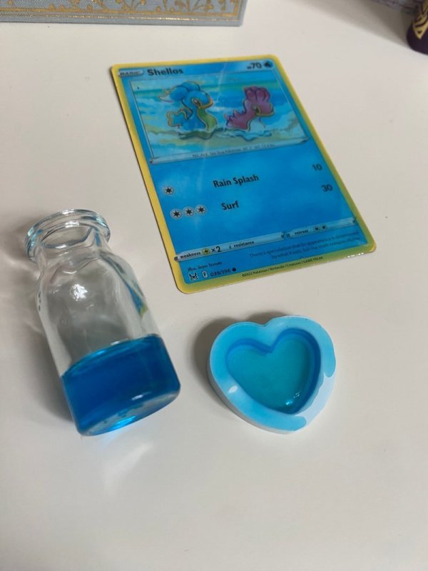 Mit Pokemonkarte, Flasche und Herz