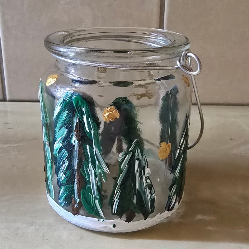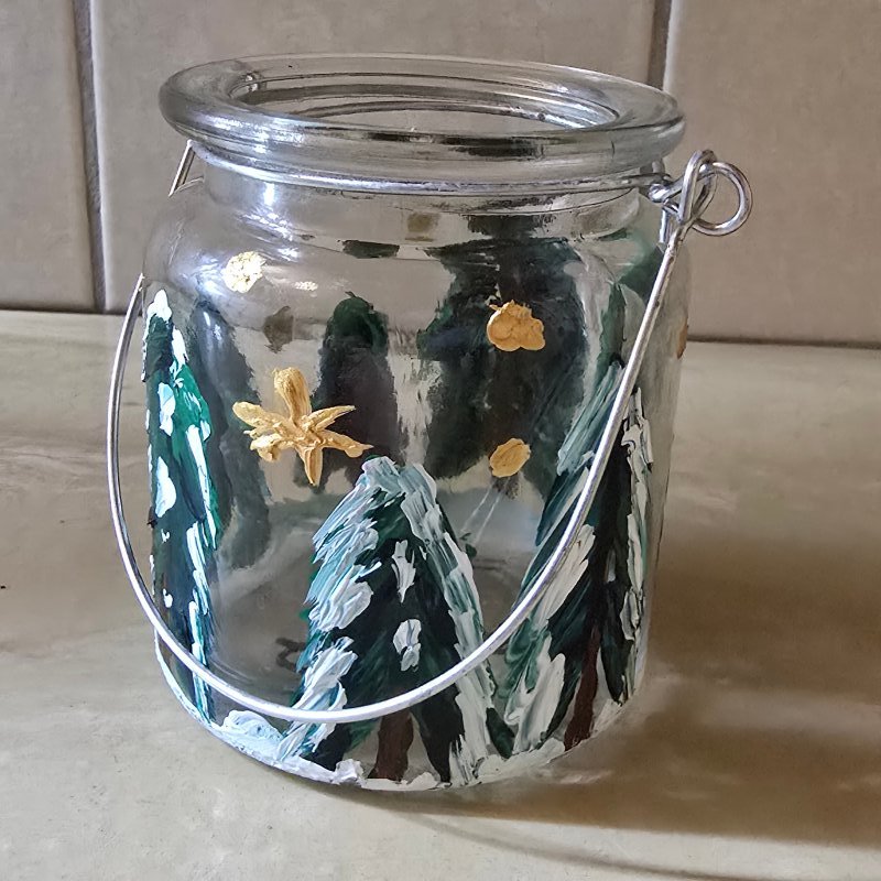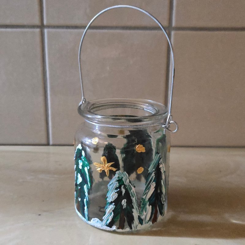 Kleines bemaltes Weihnachtsglas zum aufhängen
