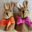 2 Hasen, um Eier warm zu halten 1 mal orange und 1 mal pinkfarbene Schleife