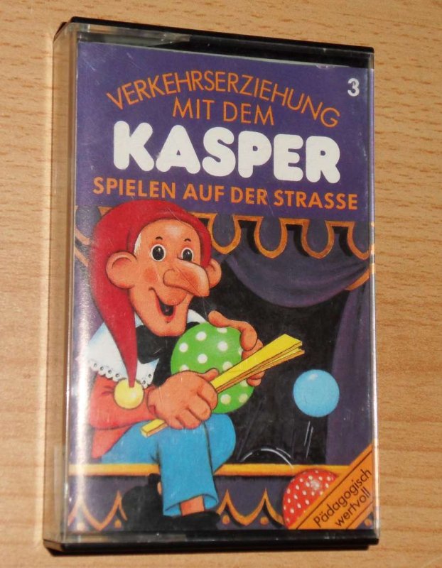 steht drauf Verkehrserziehung mit dem Kasper spielen auf der Strasse