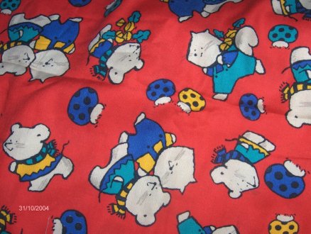 schöner weicher Kinderstoff mit Bärchen. Müsste BW sein. Ich wollte ihn verarbeiten, war aber etwas zu weich für mein Vorhaben. 1,50 x 1,60