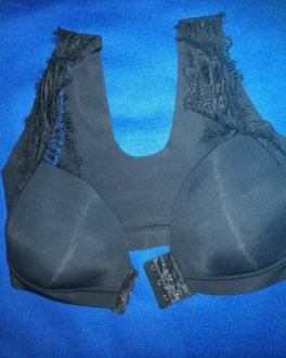 Schwarzer bh vorne hakenverschluss, gr. L, im tauschpaket für 3token