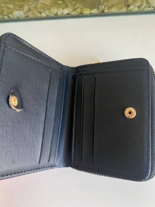 schwarzer Geldbeutel mit goldenem Reißverschluss