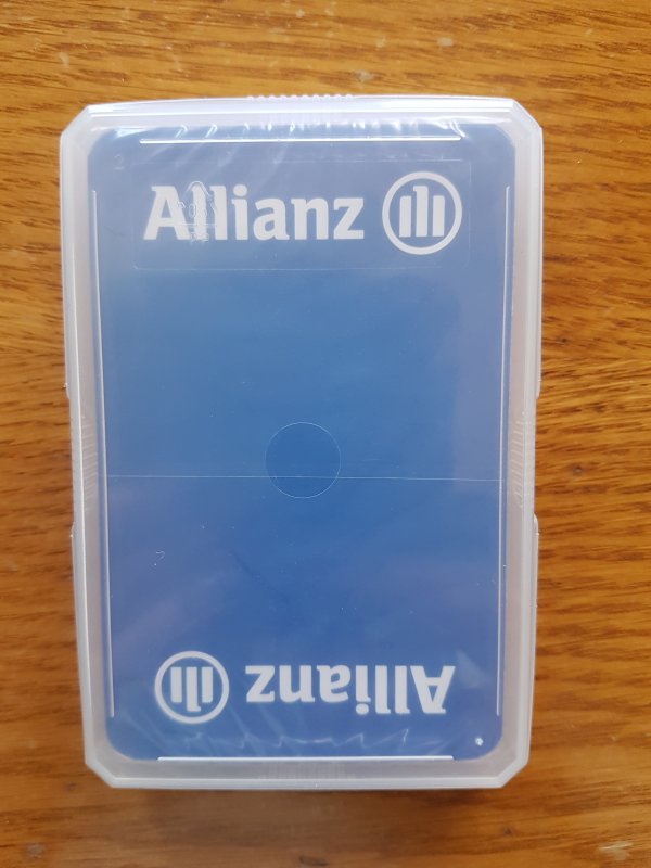 Skatkarten mit Werbeaufdruck "Allianz" hinten drauf