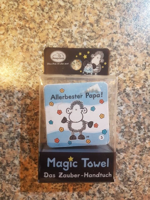 Und so funktioniert es: Handtuch aus der Verpackung nehmen und in Wasser legen. Schon nach circa 15 Minuten entfaltet sich das Handtuch von selbst - wie durch Zauberhand.