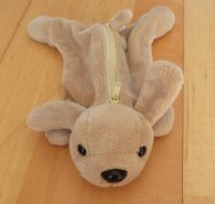 P / beiger Stoffhund oder Hase mit Reißverschluß zum aufbewahren von Dingen
