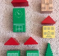 Holzbausteine Häuser und Baum