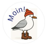 24 runde Etiketten "Moin" Möwe #1- selbstklebend