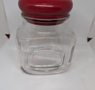 Großes Glas mit rotem Deckel
